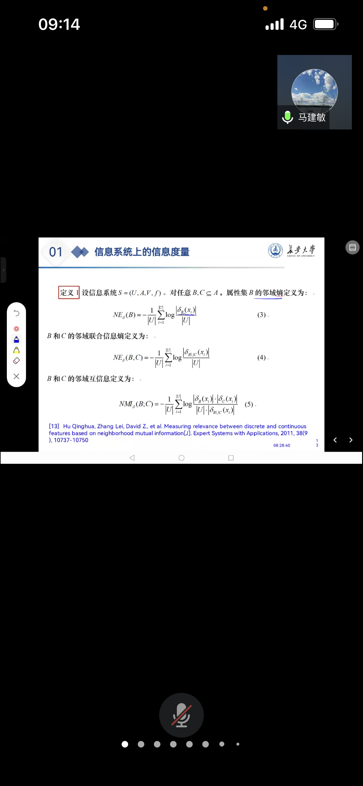 应太阳邀请,9月17日早上,长安大学马建敏教授在腾讯会议作了题为《基于邻域互信息的高维时序数据的特征选择》的报告。相关师生聆听了此次报告,报告由李进金老师主持。