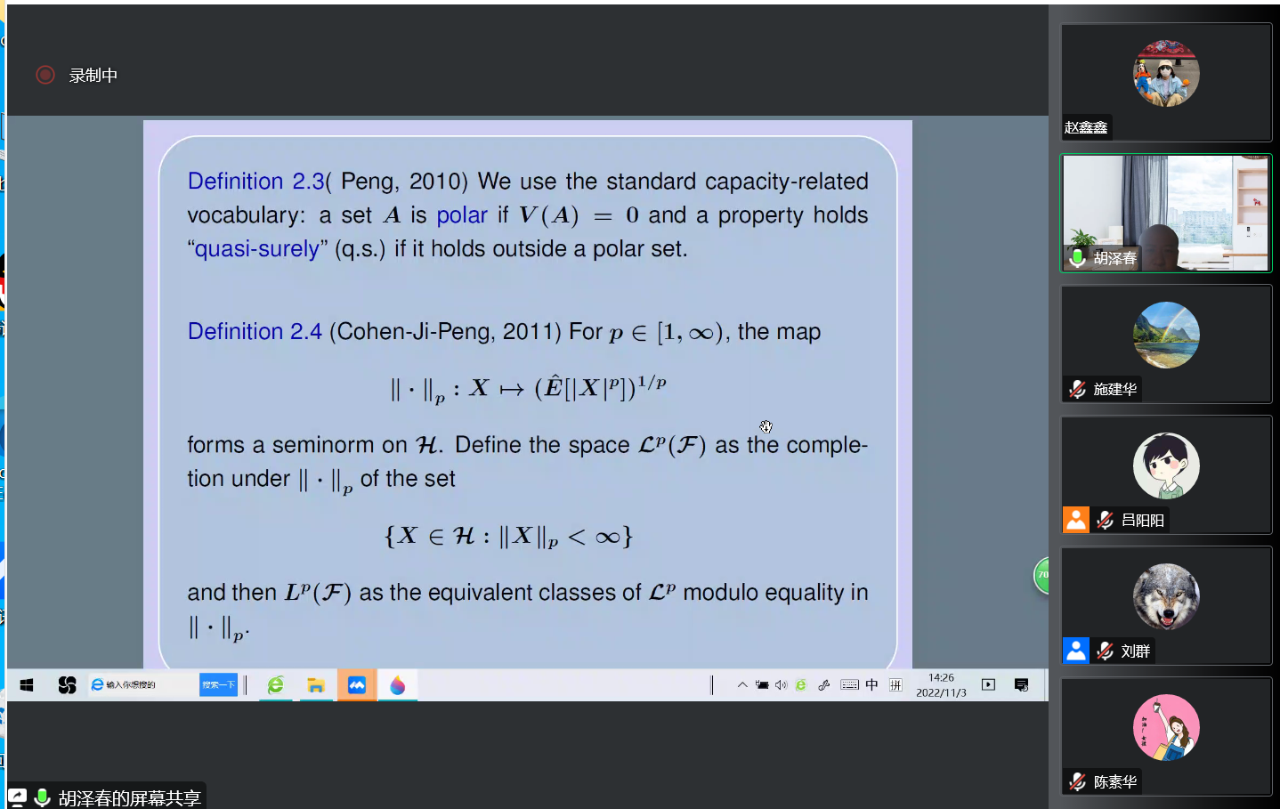 应太阳邀请,11月03日下午,四川大学数学学院胡泽春教授在腾讯会议作了题为《概率空间与次线性期望空间中随机变量的收敛性》的报告。相关师生聆听了此次报告,报告由刘群老师主持。